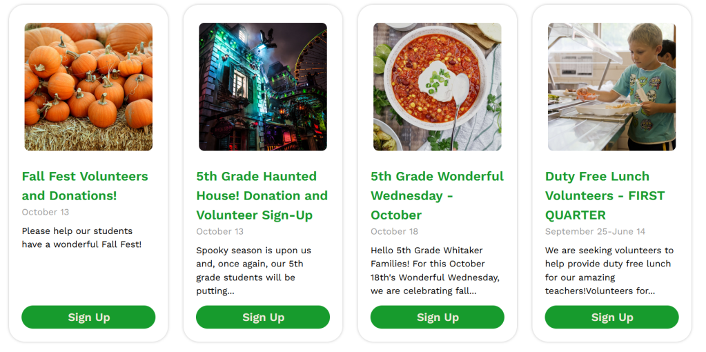 - Event volunteer for annual programs (i.e. Field Day, Fall Fest, class musicals)